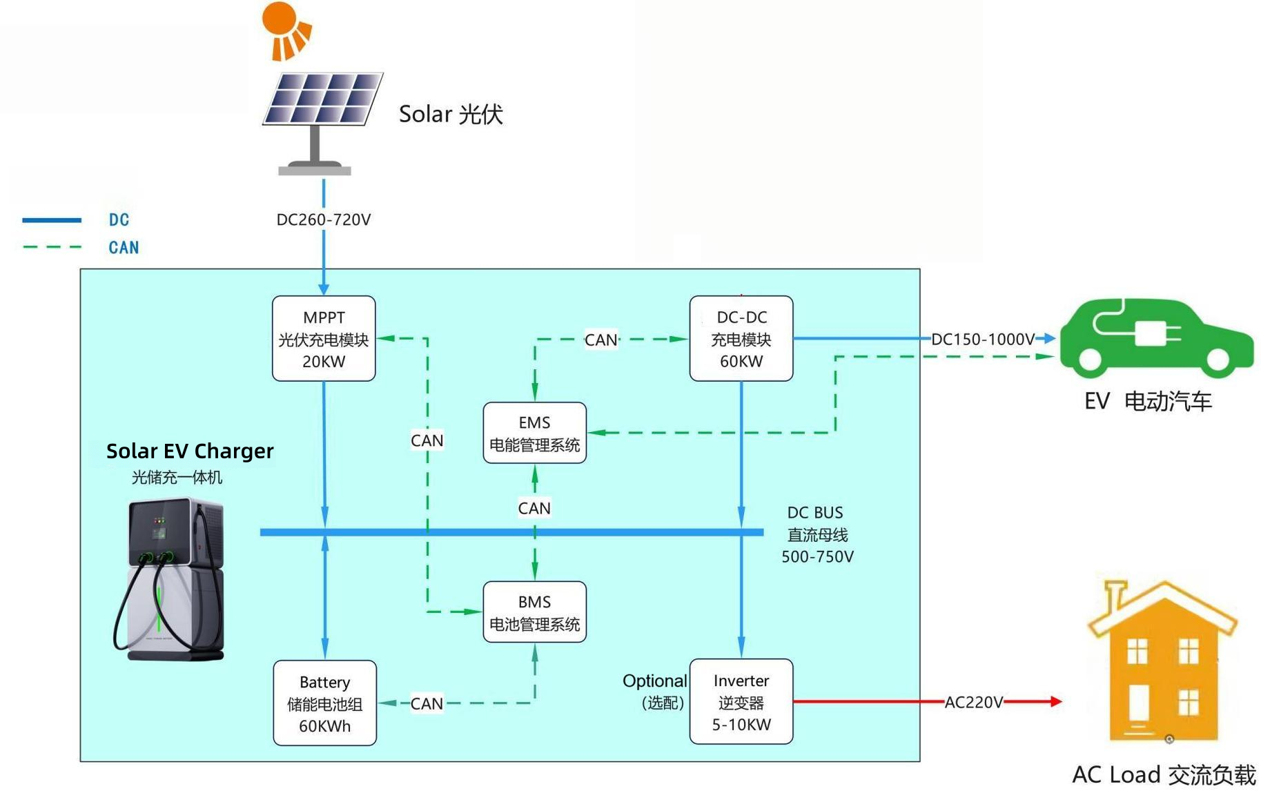 Charging an EV at a solar-powered station is often cheaper than using a grid-powered station in long term.NASN POWER 100% Solar EV Charger system is configured with EV charger , battery energy storage system and solar controller, which is independant of grid power. The complete ev charger model is easy to operate and smart for commercial publice ev charger system operation.